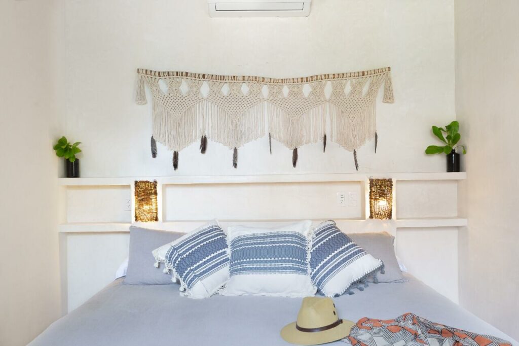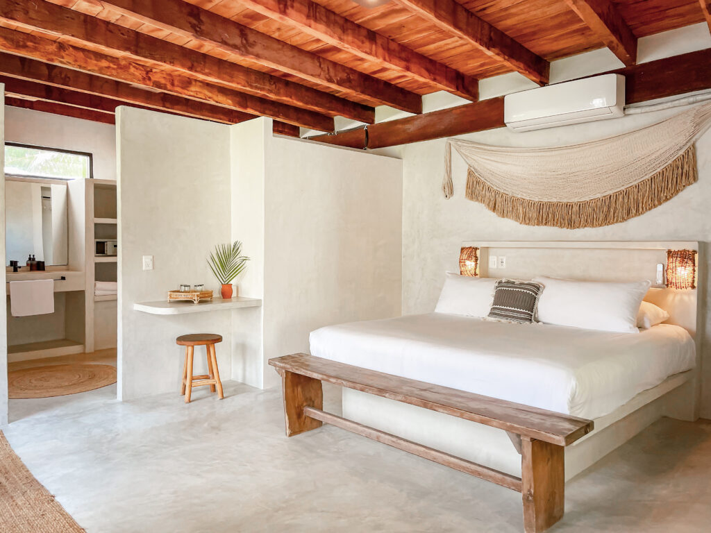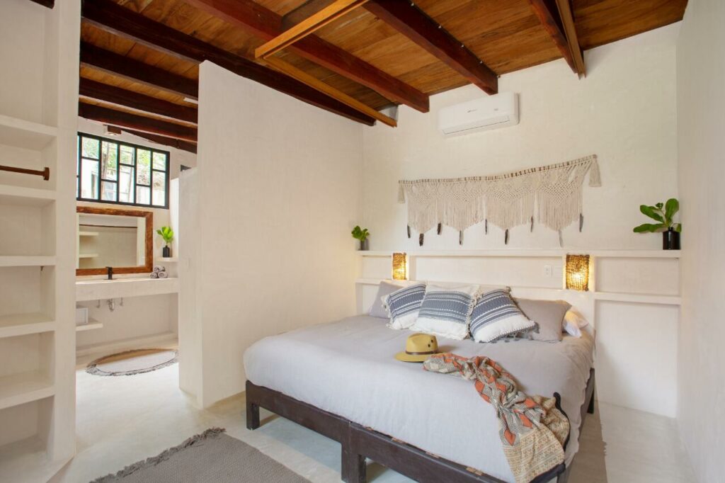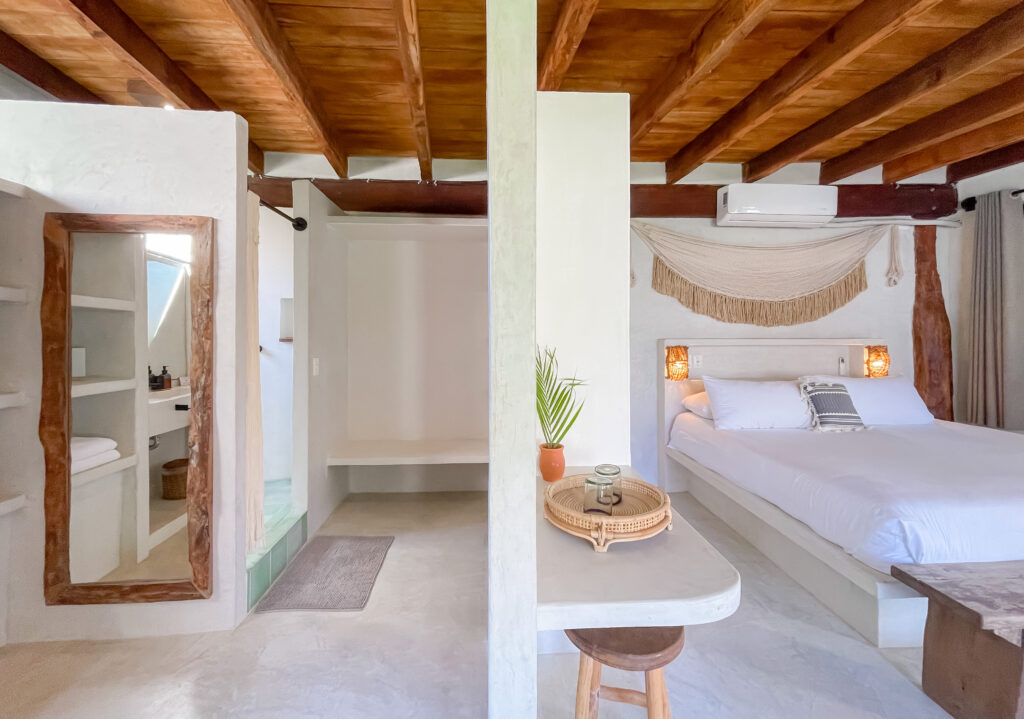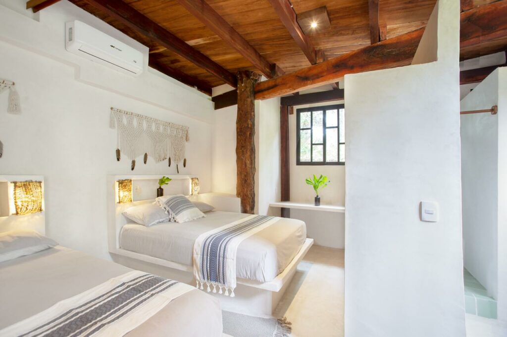 A large room set up to share. Each person has their own little space while sharing a large room with 2 other yogis. Rooms do not have a beach view and are slightly back in the property, but are comfortable and nice.